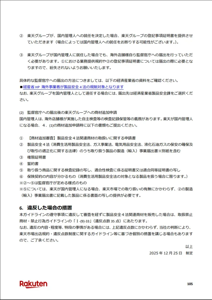 - ECモールの即時BAN: Amazonや楽天市場などのモールは、PSE違反に対して極めて厳格です。経産省の試買テスト結果や通報を受け、アカウントを即座に停止します。