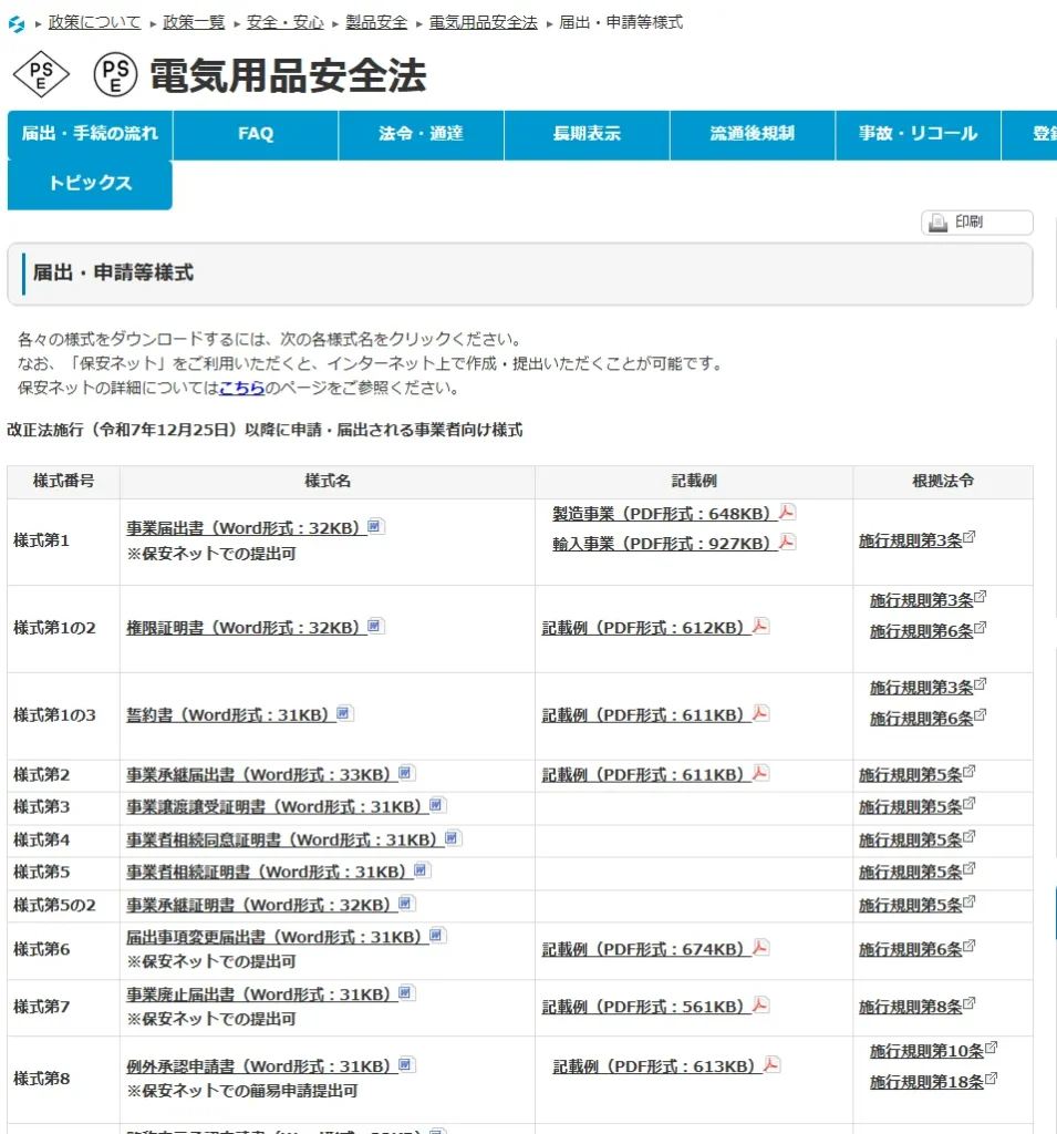 - PSEマークの必要書類はどこでダウンロードできますか?