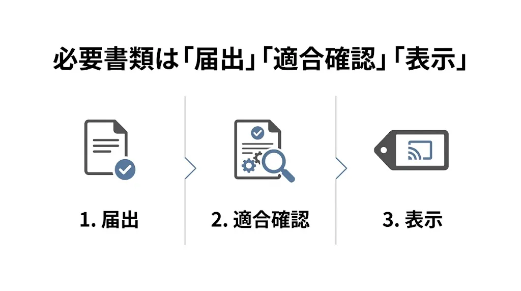 PSE手続きの全体像|必要書類は「届出」「適合確認」「表示」で分かれます