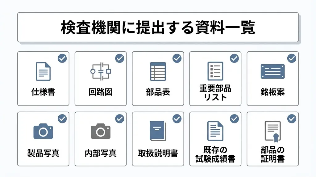 特に輸入品やOEM製品では、回路図、部品表、重要部品リスト、試験レポート、ラベル案など、思った以上に多くの資料が必要になり、途中で手が止まってしまうケースが少なくありません。